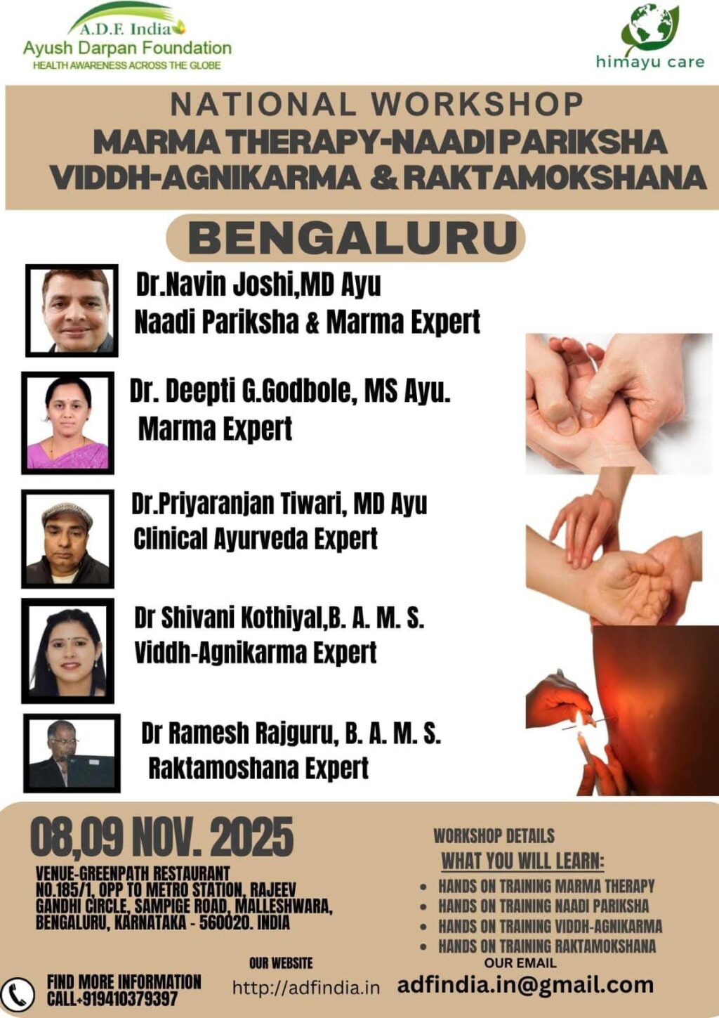 The event is scheduled to take place on 8th and 9th November 2025 (Saturday & Sunday) at The GreenPath Organic Restaurant, Malleshwaram, Bengaluru. With only 50 seats available, this immersive training is expected to attract Ayurveda professionals, students, and wellness enthusiasts from across the country.